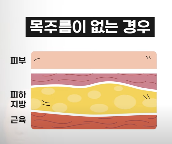 원래는 피부 그 밑에 피하지방, 그 밑에 목 근육이 자리하고 있지만 피부가 얇거나 반복적으로 일정 위치에서 접히게 되면