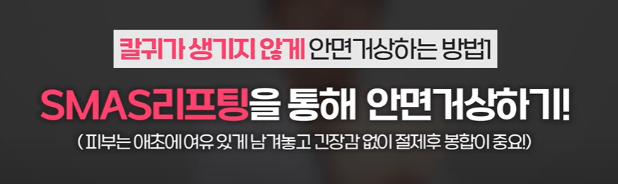 또한 스마스 리프팅을 통해 단단하게 리프팅 된 조직이고, 고정이 되게 되면 거상된 조직이 다시 내려오는 현상도 적을 테고
