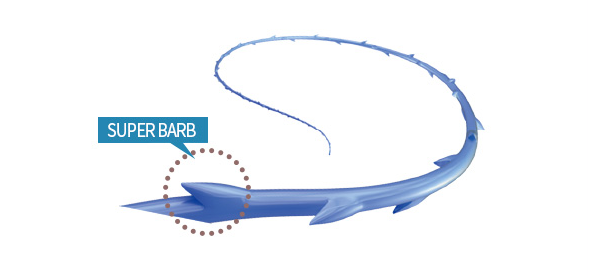 이 실이 조직 내로 들어가 잡아당겨졌을 때 코그가 조직을 물고 잡아당겨지는 방향으로 끌어올려지게 됩니다.